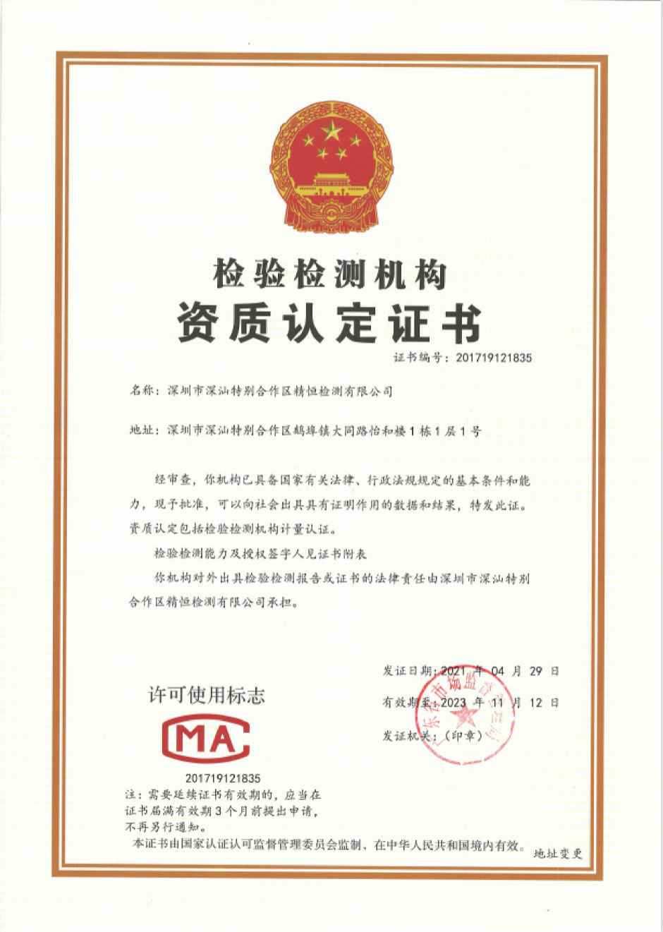 深圳市深汕特别合作区开云唯一官网_开云(中国)前身为深汕特别合作区开云唯一官网_开云(中国),由开云唯一官网_开云(中国)控股投资,于二零一四年十二月在汕尾市住房和城乡建设局备案(证书号:JCJG-2015003),从事检验检测工作,二零一五年深汕特别合作区招商引资,为了更好的服务于深汕特别合作区,方便于建设管理者严把建设工程质量关。根据国家相关法律、法规要求,当地也必须有国家认可的检验检测机构,作为一个深圳市检测经验丰富的检测机构,经汕尾市政府、深汕特别合作区管理委员会等领导审批后,作为第二批进驻深汕特别合作区企业。由于建设发展的需要,本公司于二零二一年十月二十七日更名为深圳市深汕特别合作区开云唯一官网_开云(中国)。